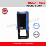 Make your mark with the Trodat Printy 4630 custom self-inking rubber stamp. This round-shaped stamp comes with a plate size of 30 x 30 mm and its own built-in ink pad. You can personalize the stamp with up to 2 lines of text, artwork, and logos to create a custom design. Order now and get your personalized rubber stamp delivered right to your doorstep.